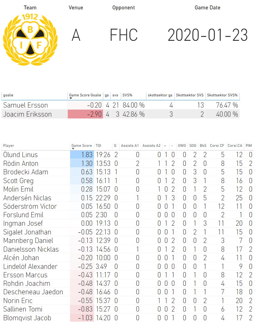 mattiask: kollade in den precis! Bara VS som låg på +. I Frölunda var det bara 1 som låg på -.